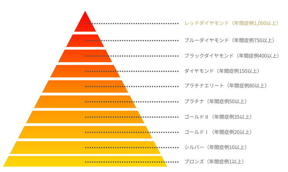 年間の症例数が評価の対象になり、ランクが高いほど症例実績が多いことになります。