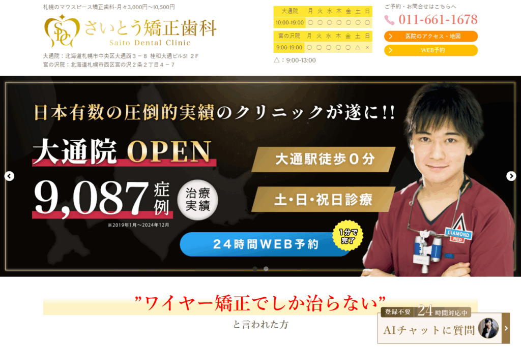 札幌は特にマウスピース矯正を専門にしているクリニックが多く、そのほとんどがインビザラインによる矯正でした。